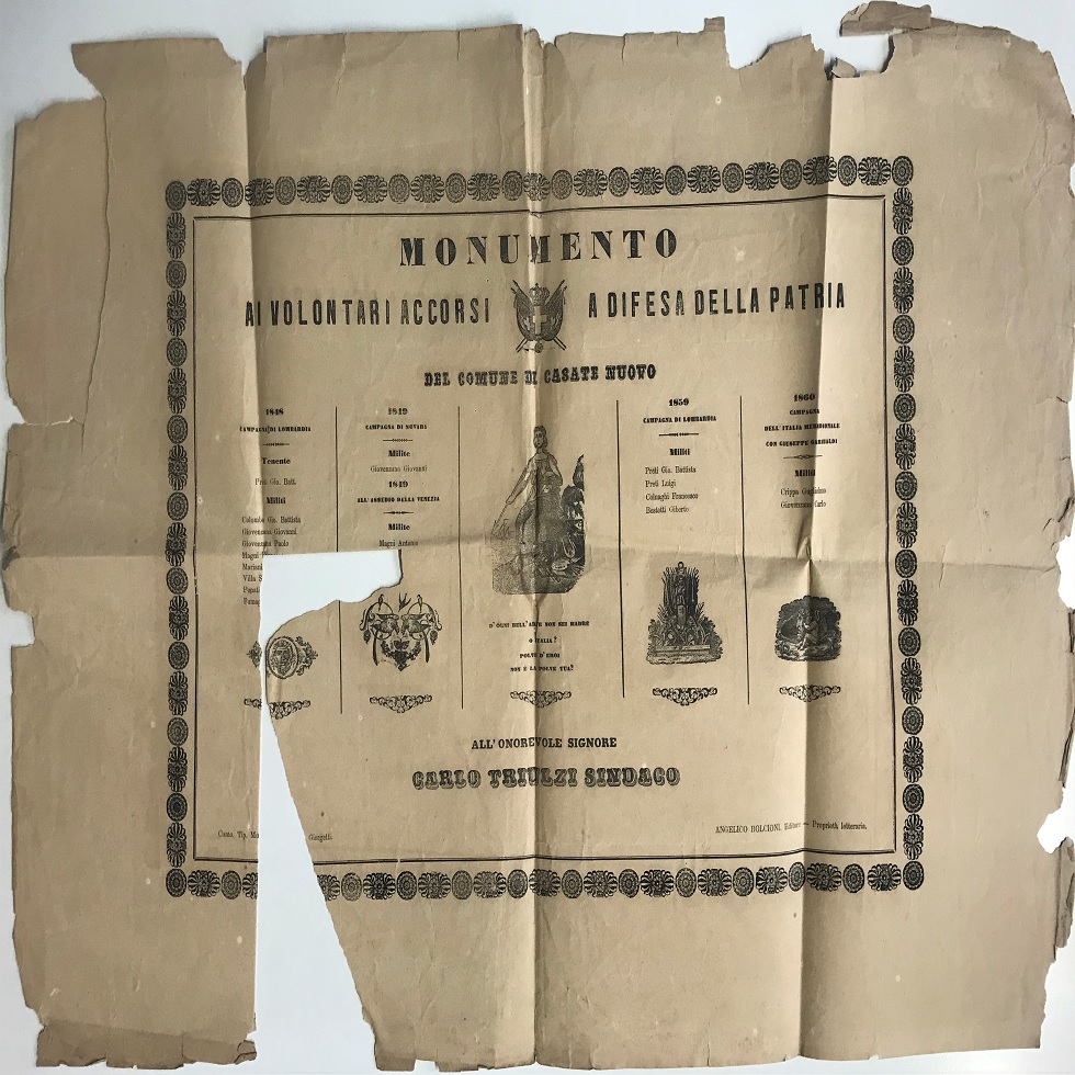 Elenco a stampa dei volontari casalesi partecipanti alle campagne militari dal 1848 al 1860