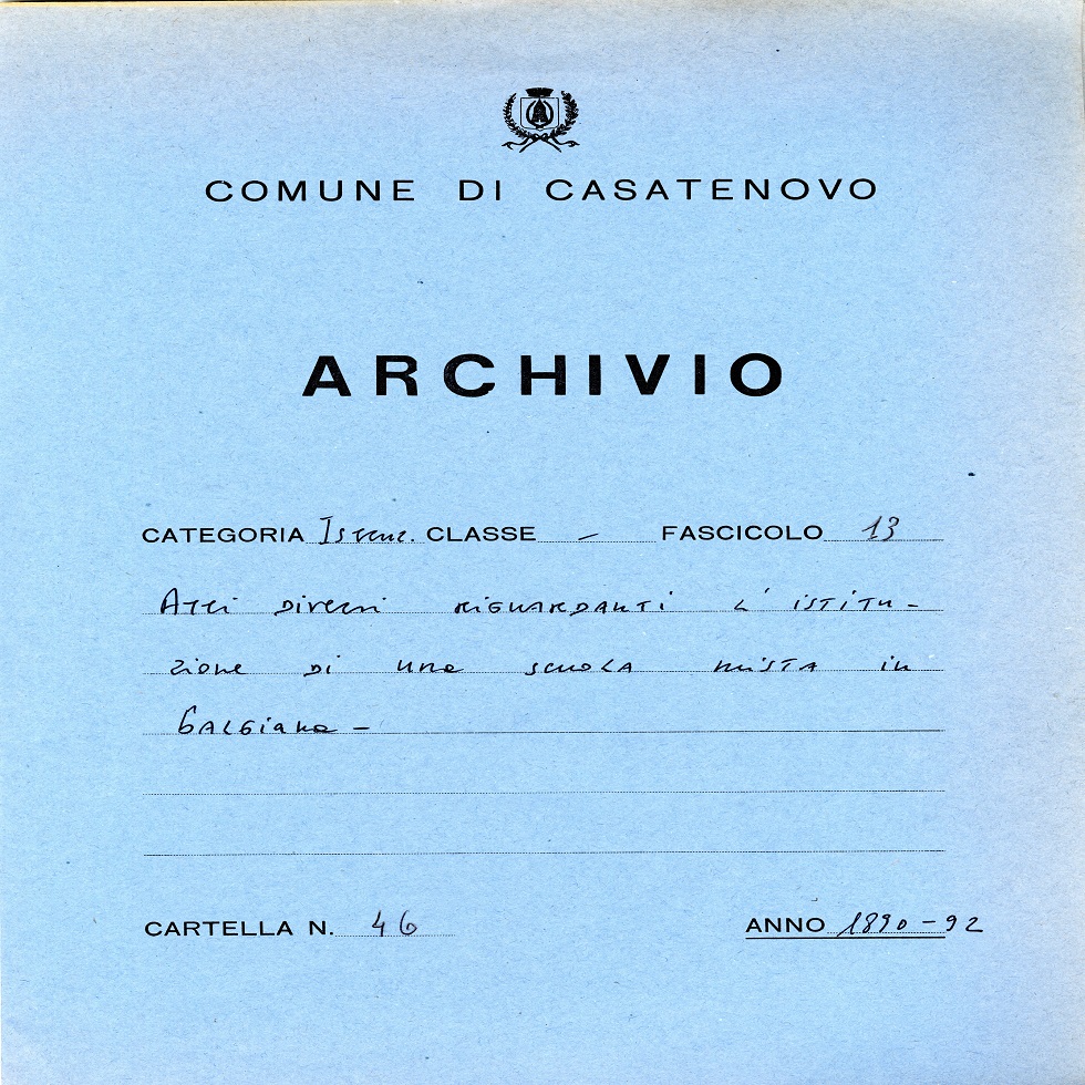 Atti diversi riguardanti l'istituzione di una scuola mista in Galgiana