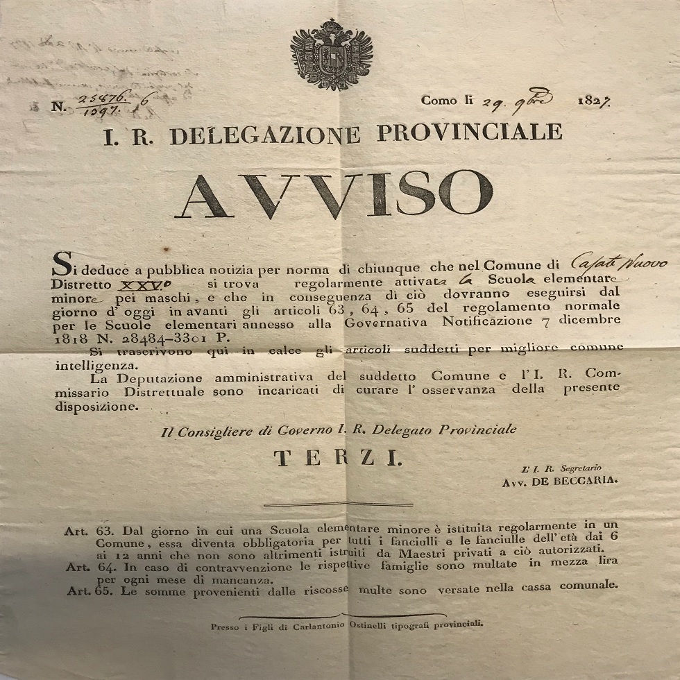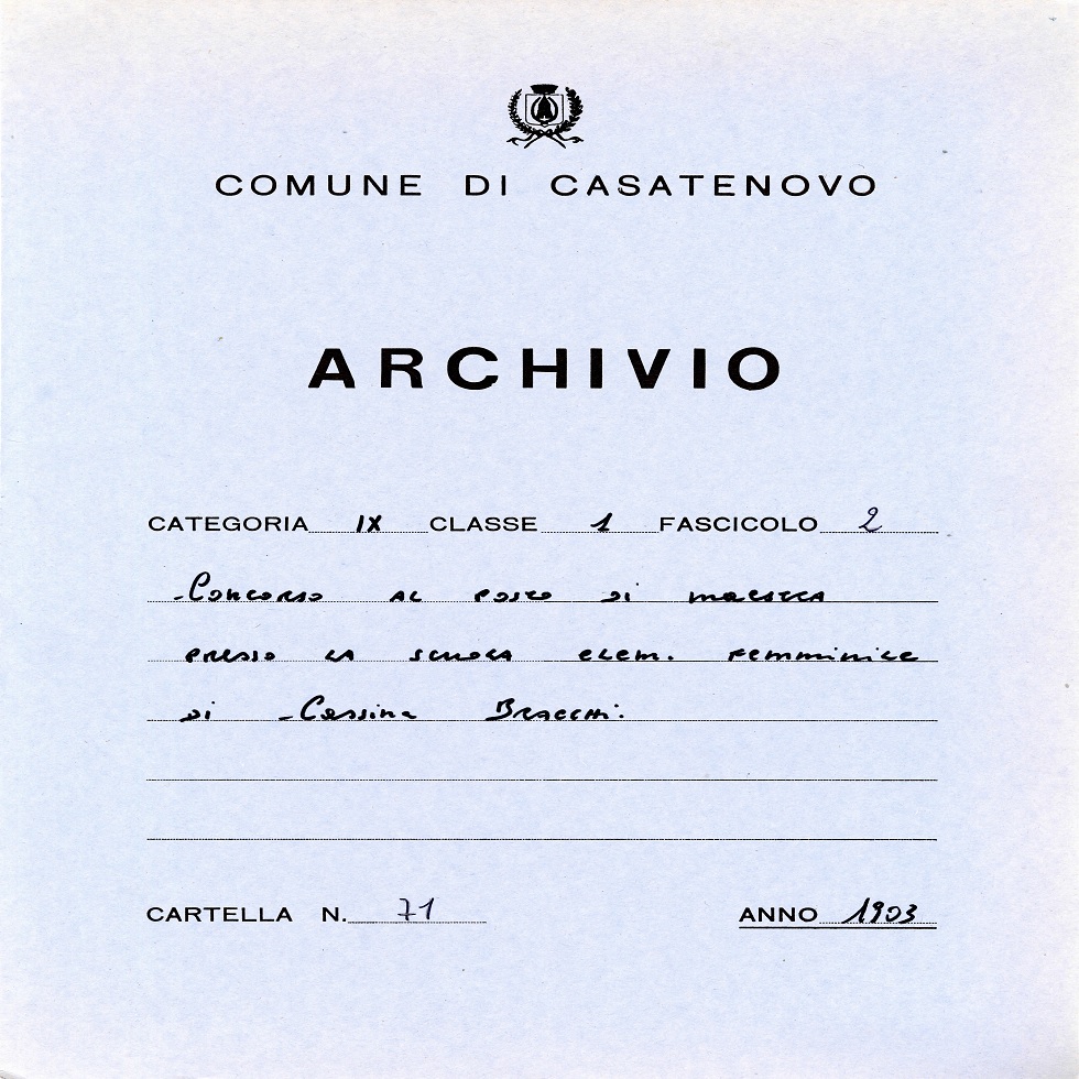 Concorso al posto di maestra presso la scuola elementare femminile di Cassina Bracchi