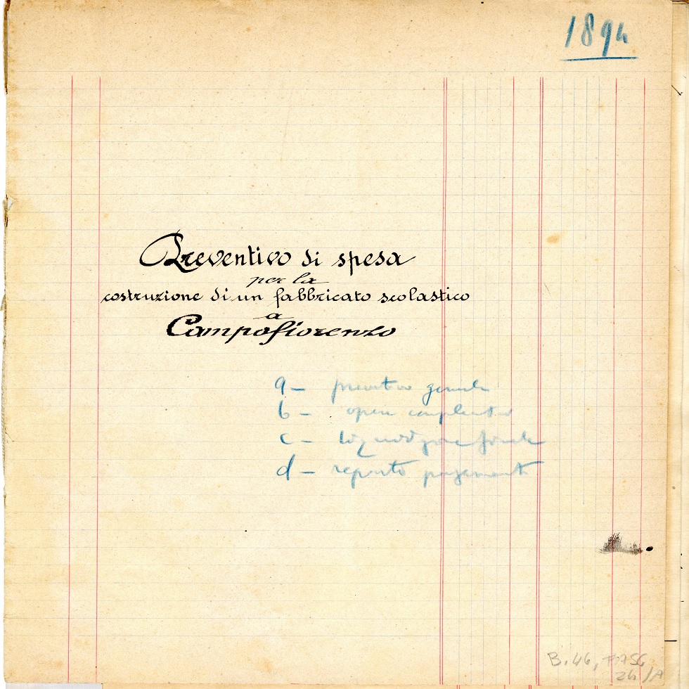 Preventivo di spesa per la costruzione di un fabbricato scolastico Campofiorenzo