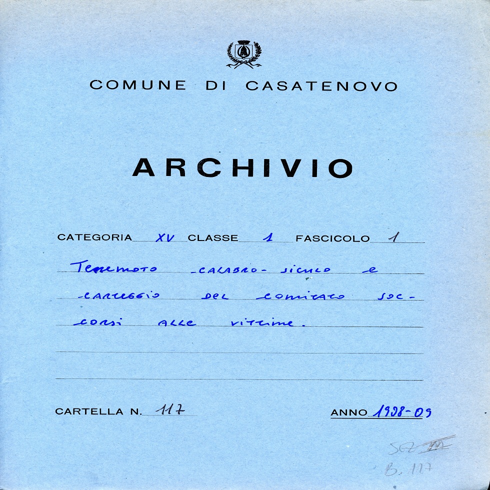 Terremoto - Calabro - Siculo e carteggio del comitato soccorsi alle vittime