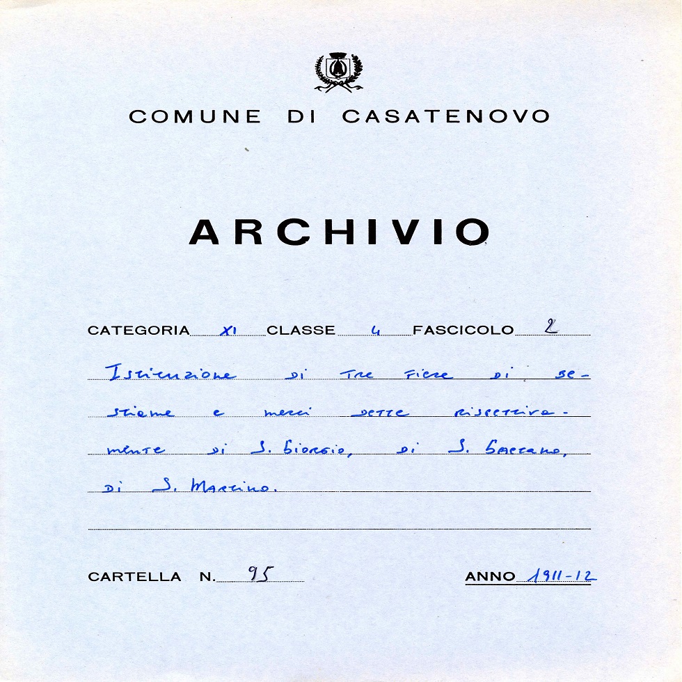 Istituzione di tre fiere di bestiame e merci dette rispettivamente di S. Giorgio, di S.Gaetano e di S. Martino